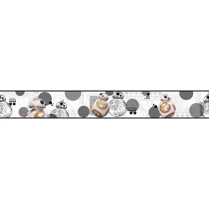 Frise papier peint BB8 STAR WARS de la collection DISNEY pour décorer le mur d’une chambre de garçon.