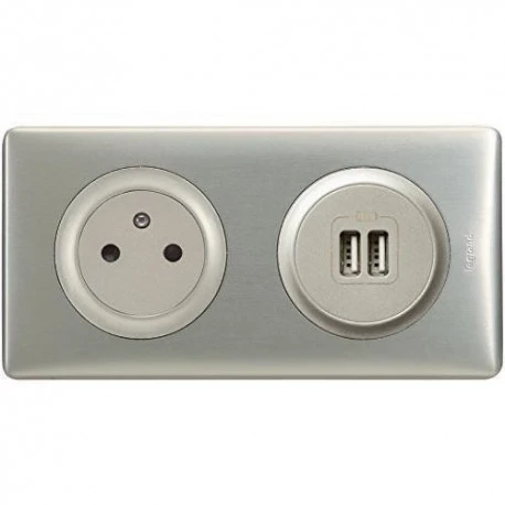 Legrand Céliane – Prise 2P+T + Prise Double USB support à vis – Ensemble Titane complet à composer, ce pack contient plusieurs références que vous retrouverez en bas de cette page dans contenu du pack.