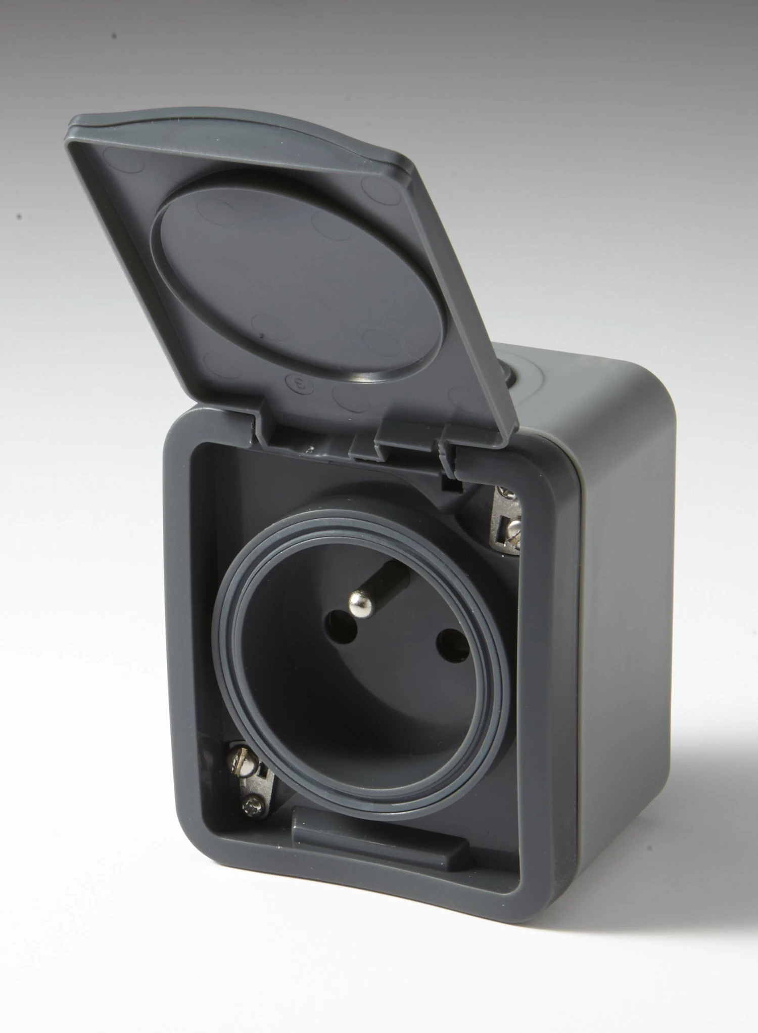Prise Avec Terre étanche Extrem, LEXMAN, Gris Fusain