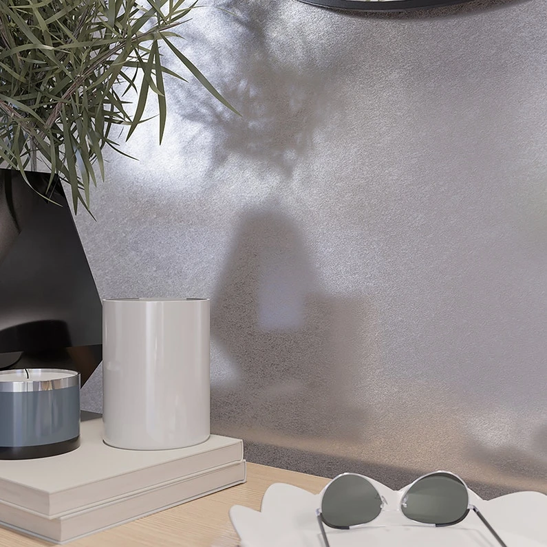 Revêtement mural à peindre aux effets décoratifs thermofromés en 3D, A base de cellulose polyester résine et minéraux